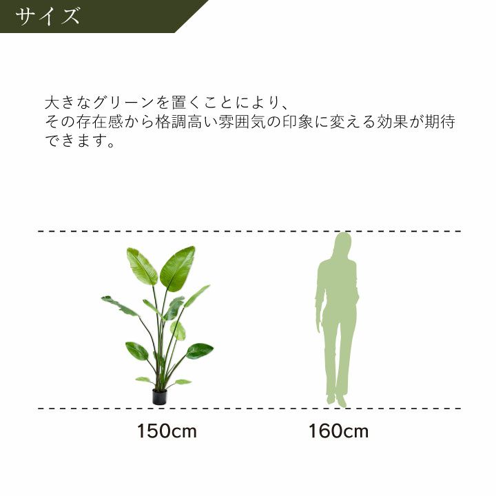他の画像を見る 人工樹木 観葉植物 造花 樹木 草花 STRELITZIA GREEN 118572 大型 フェイクグリーン「ストレリチア 150cm シルカ(Silk-ka)」おしゃれ リアル 人工観葉植物 草花 インテリアグリーン 極楽鳥花 販売価格 ¥ 46,200 税込 在庫切れ 詳細を見る お気に入りに登録する (0)