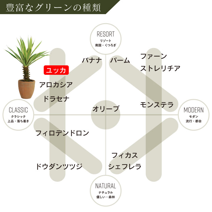 ユッカは贈り物としても人気の高い植物で個性的な樹形が特徴的。