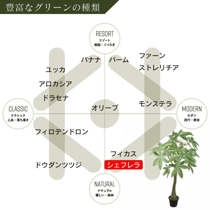 他の画像を見る wg CLAY クレイ フェイク 7-026 910-101 キューブ 165cm以下 フェイクグリーン×プランターセット「シェフレラ×Cube w/g」[高さ150cm・人工樹木・人工観葉植物] 販売価格 ¥ 52,800 税込 詳細を見る お気に入りに登録する (0)