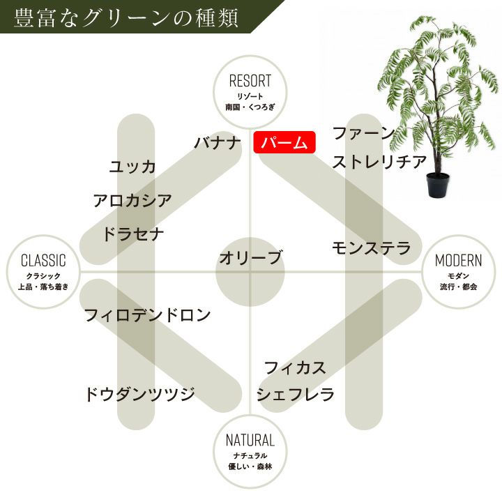 他の画像を見る 人工樹木 観葉植物 造花 樹木 草花 PALM GREEN 132051 大型 フェイクグリーン「パーム 153cm シルカ(Silk-ka)」おしゃれ リアル 人工観葉植物 樹木 インテリアグリーン ヤシ 販売価格 ¥ 47,300 税込 在庫切れ 詳細を見る お気に入りに登録する (0)