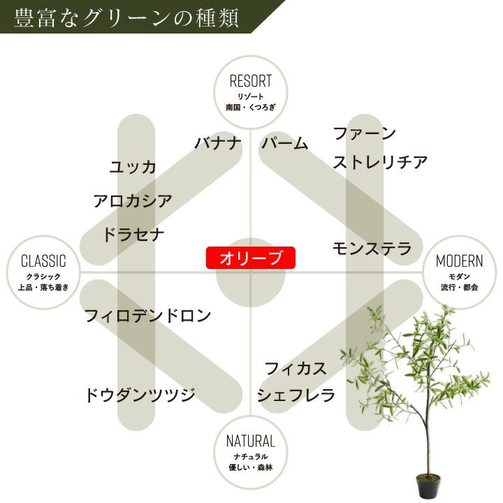 他の画像を見る wg CLAY クレイ フェイク 7-001 910-101 キューブ 165cm以下 フェイクグリーン×プランターセット「オリーブS×Cube w/g」[高さ165cm・人工樹木・人工観葉植物] 販売価格 ¥ 60,500 税込 詳細を見る お気に入りに登録する (0)