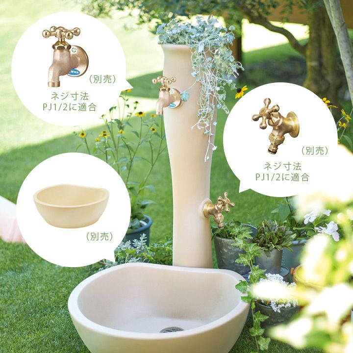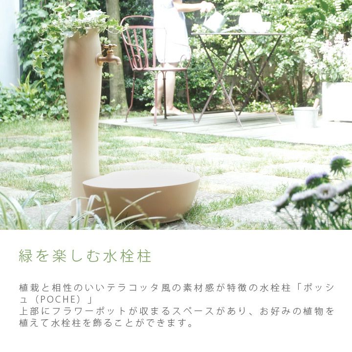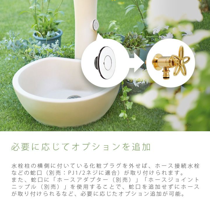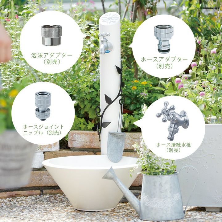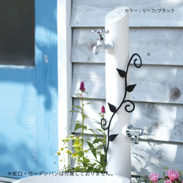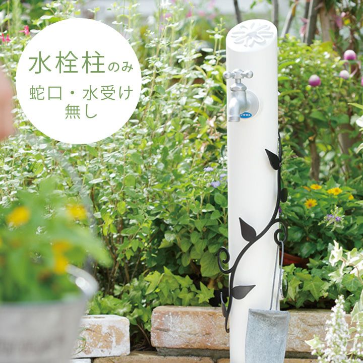 立水栓 おしゃれ ナチュラル 水回り 花 葉っぱ フラワー リーフ 白 庭 エクステリア エレガント スリム 飾り マーガレット 【蛇口・ガーデンパンは別売】「水栓柱 フルール(FLEUR) 単品」