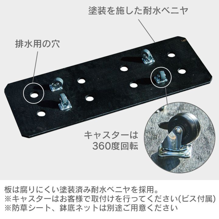 他の画像を見る プランター土台 キャスター 花壇 家庭菜園 野菜 木製 シンプル ガーデニング 庭 「a+ design ガーデンボックス800×300専用 キャスター付きベース 2個セット」 販売価格 ¥ 9,240 税込 詳細を見る お気に入りに登録する (0)