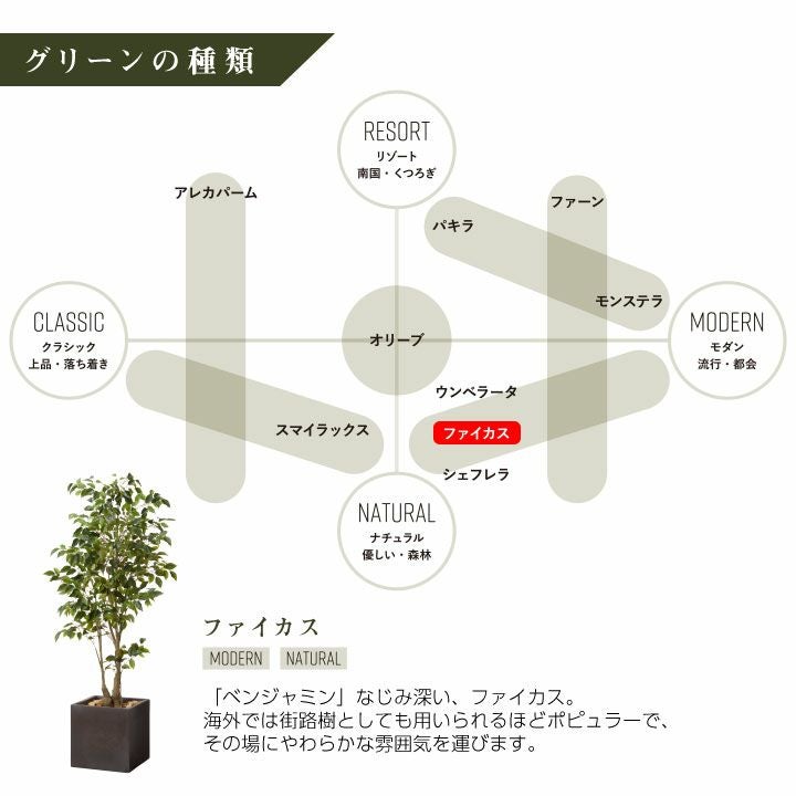 他の画像を見る wg CLAY クレイ フェイク 7-022 910-102 キューブ 170cm以上 フェイクグリーン×プランターセット「ファイカス×Cube w/g」[高さ180cm・人工樹木・人工観葉植物] フィカス 販売価格 ¥ 72,600 税込 詳細を見る お気に入りに登録する (0)