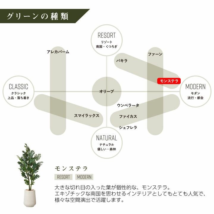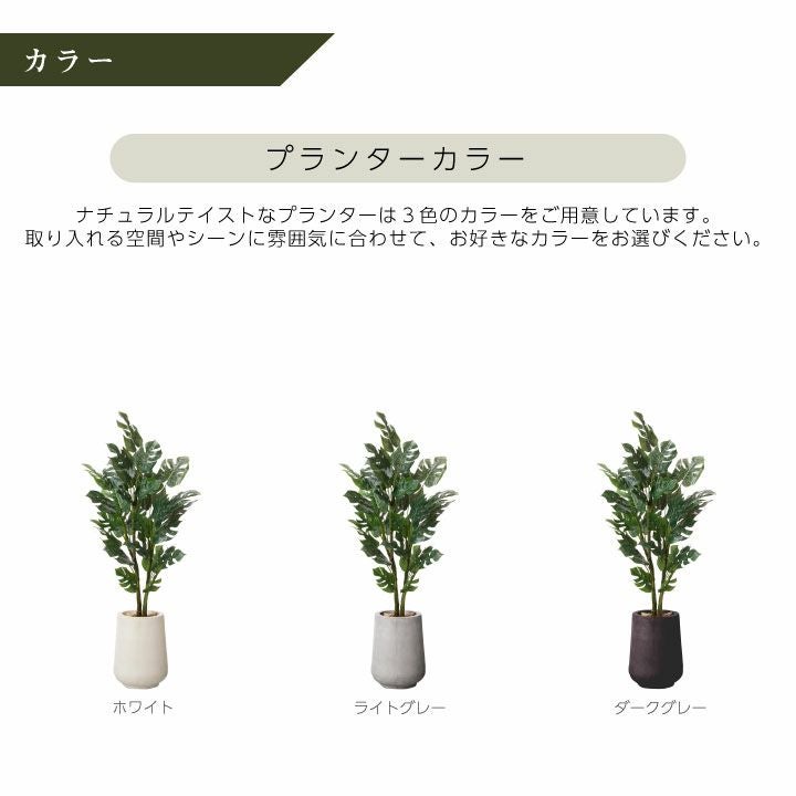 他の画像を見る wg CLAY クレイ フェイク 7-025 910-249 HDR 165cm以下 フェイクグリーン×プランターセット「モンステラ×High Drop Round w/g」[高さ135cm・人工樹木・人工観葉植物] 販売価格 ¥ 41,800 税込 詳細を見る お気に入りに登録する (0)