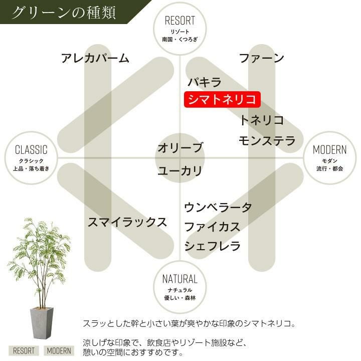 他の画像を見る wg CLAY クレイ フェイク 7-006 910-127 トールスクエア 170cm以上 フェイクグリーン×プランターセット「スマイラックス×Tall Square w/g」[高さ190cm・人工樹木・人工観葉植物] 販売価格 ¥ 80,300 税込 詳細を見る お気に入りに登録する (0)
