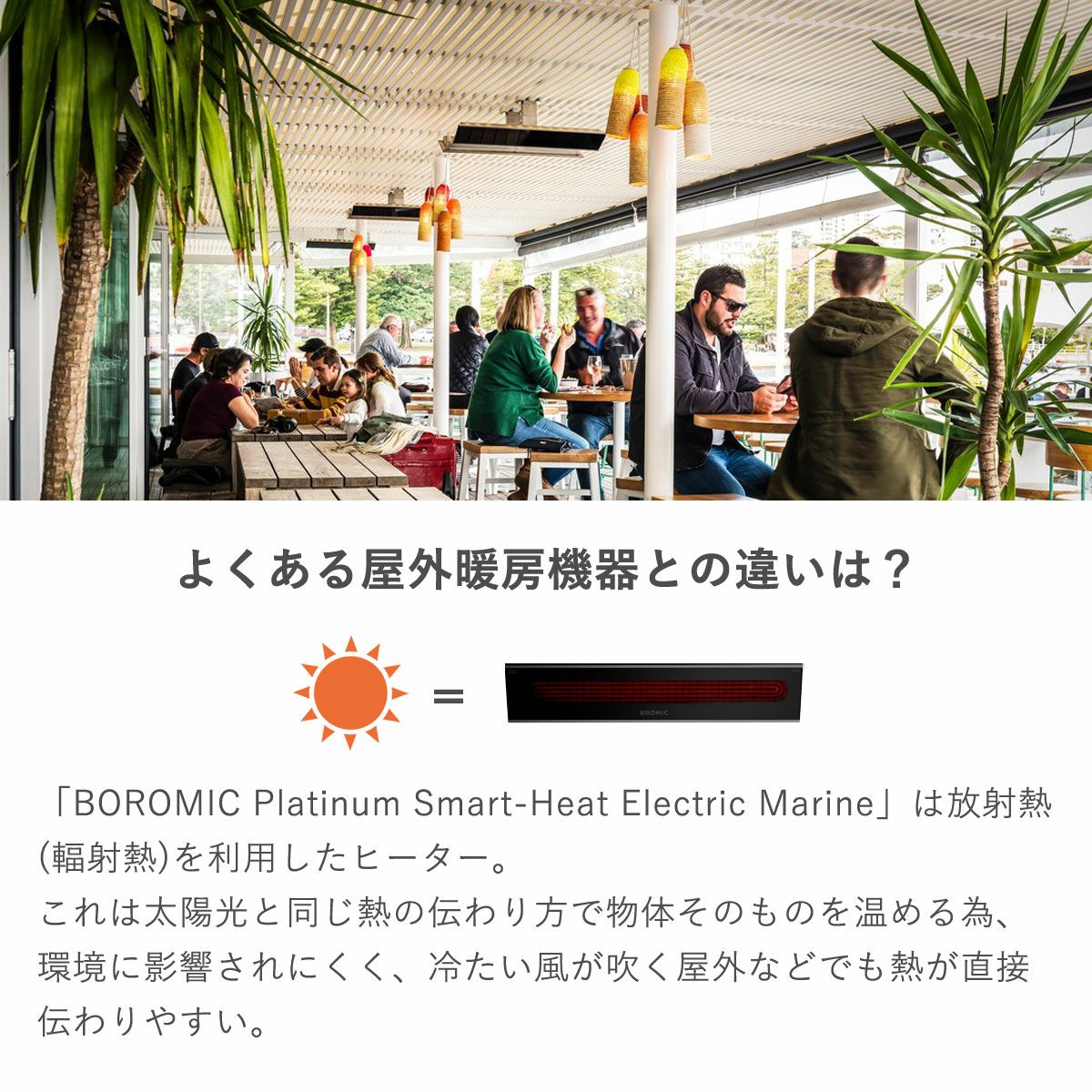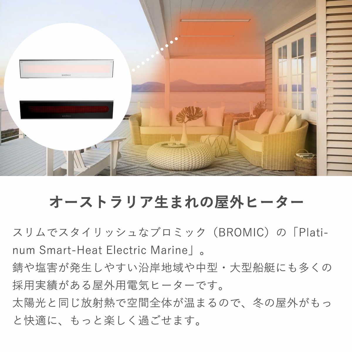 他の画像を見る 外用 暖房器具 コントラクト 法人 グランピング キャンプ パティオ ガゼボ 東屋 防水 業務用 屋外用電気ヒーター 「ブロミック(BROMIC) プラチナム スマートヒート エレクトリック マリーン 2150W」 販売価格 ¥ 269,500 税込 〜 販売価格 ¥ 税込 詳細を見る お気に入りに登録する (0)