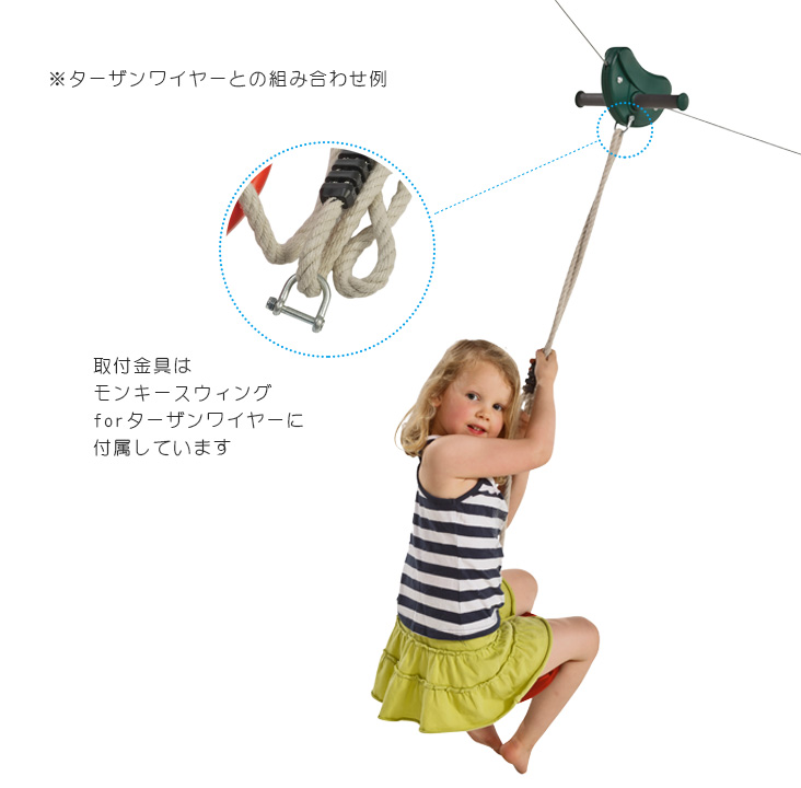 別売りのターザンワイヤーと組み合わせれば、座ったままでジップラインが楽しめます。