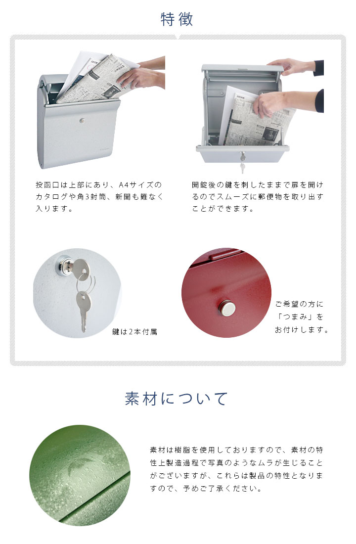 マットな質感が同価格帯のポストよりワンランク上の品質を感じさせます。