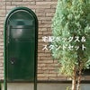 フィンランドからやってきた上段に郵便ポストと下段に宅配ボックスを備えた1台2役の多機能宅配ポストと、専用スタンドのセットです。