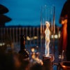 ガラスシリンダーの中の炎が美しく渦を巻いて立ち上る屋外用のテーブルランプ SPIN(スピン)。