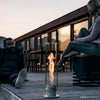 消火はシリンダーに蓋をするだけ。ガラスシリンダーの中の炎が美しく渦を巻いて立ち上る屋外用のテーブルランプ SPIN(スピン)。