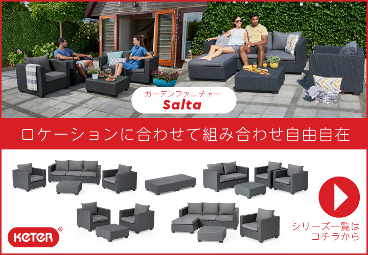 サルタ salta ガーデン ファニチャー チェア ソファ 2人掛け 樹脂製 クッション 耐候性 防錆 おしゃれ 樹脂製 二人掛け「2シーターソファ ケター(KETER) サルタ・サッポロ(Salta/Sapporo 2-SEATER SOFA 144986)」樹脂製 ラタン調 ファニチャー