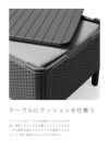 素材:アームチェア・テーブル/ポリプロピレン、クッションカバー/アクリル、スポンジ/ポリウレタン・ポリエステル