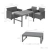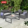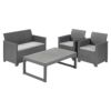 お庭やウッドデッキでのんびりとくつろげるおしゃれなソファ、アームチェア×2、テーブルの4点セットです。