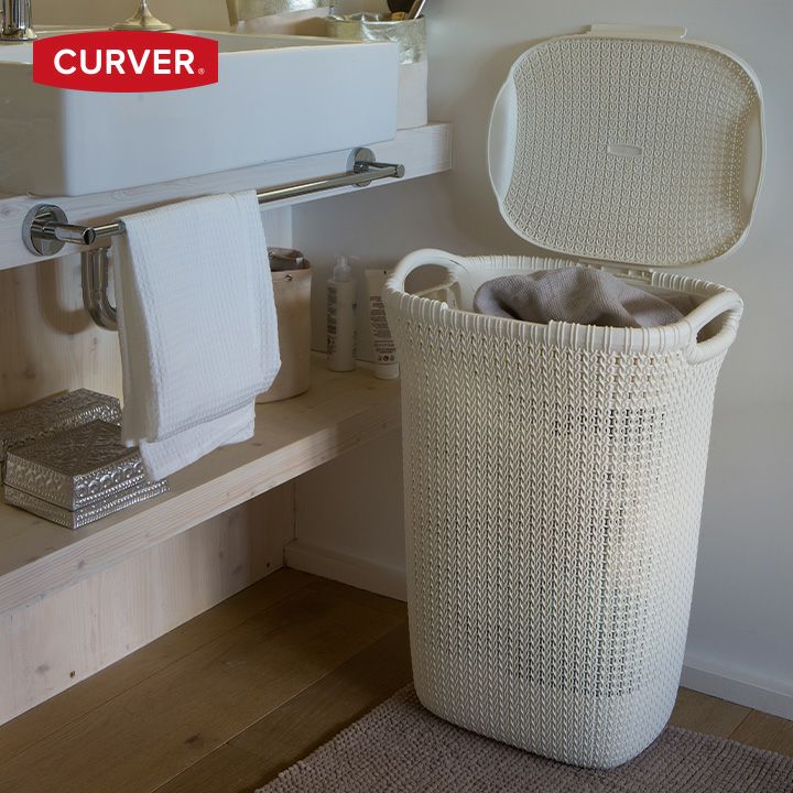 本物のニットのようなリアルな編み目と透け感が特徴のランドリーバスケット。