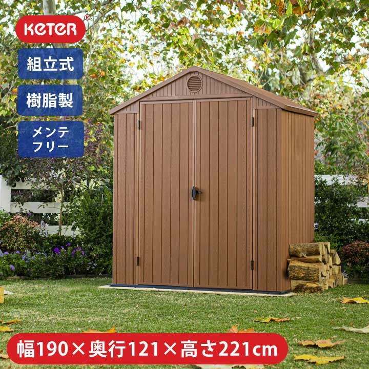 お庭の植栽にも程よくマッチするナチュラルテイストな物置「ケター (KETER) ダーウィン ガーデンシェッド 6x4」。