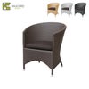アームレストと一体型の傾斜のある背もたれが特徴の美しく編み込まれた人工ラタンのラウンジチェアは、全天候型仕様のため様々な空間・ライフスタイルに適しています。