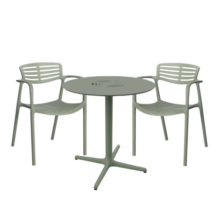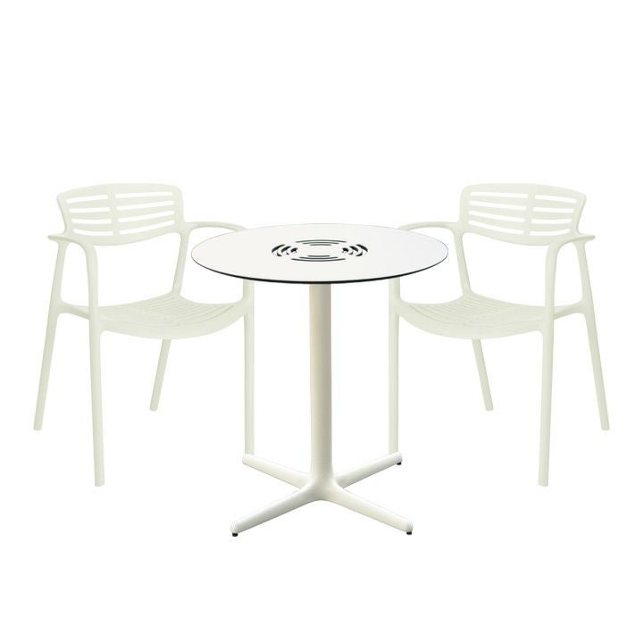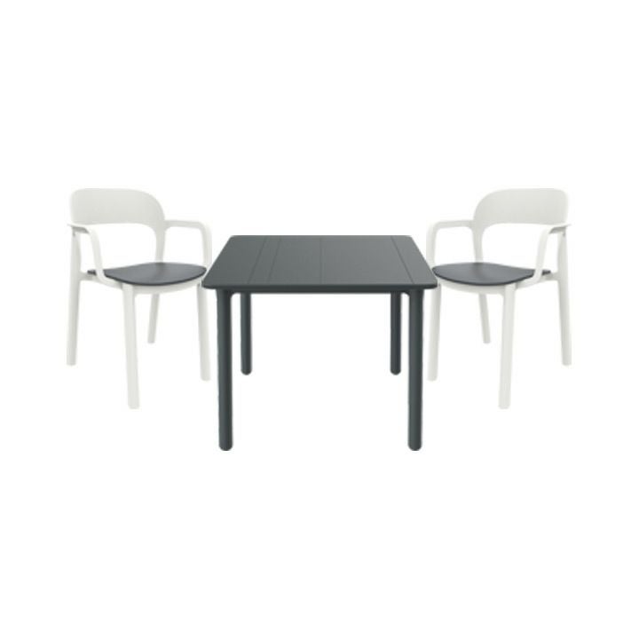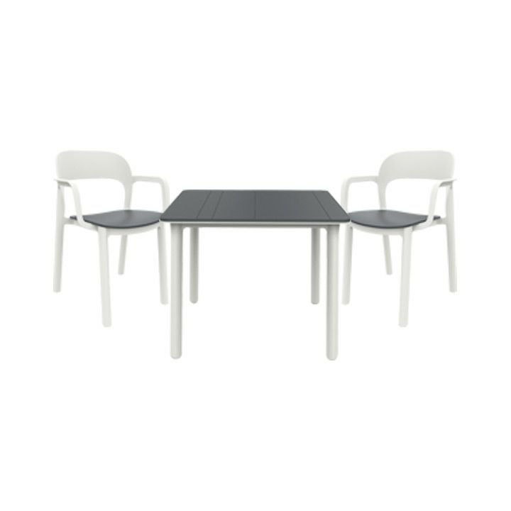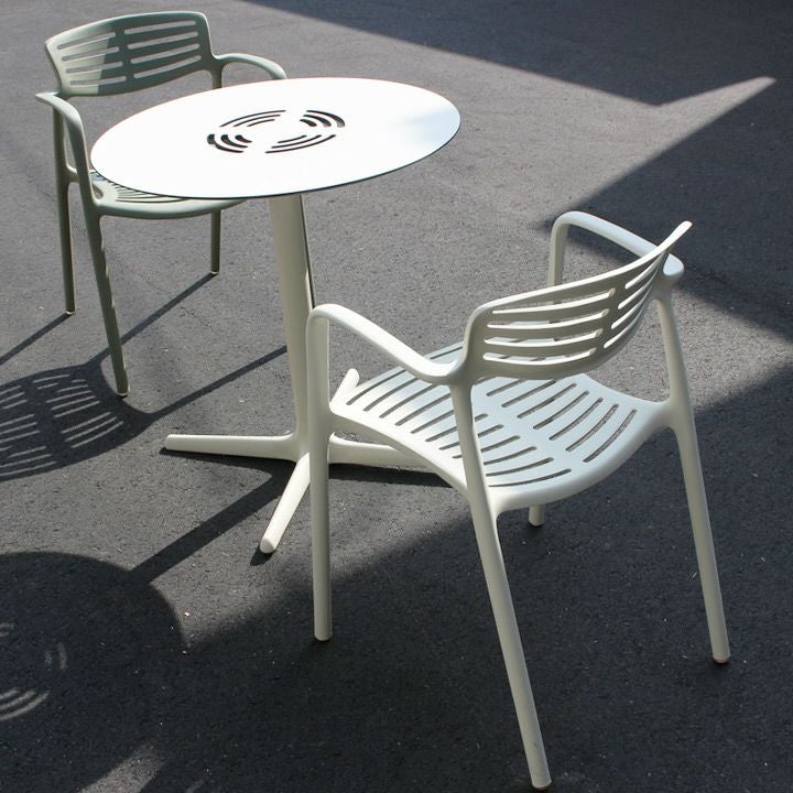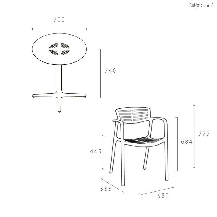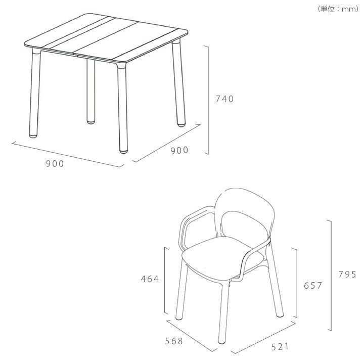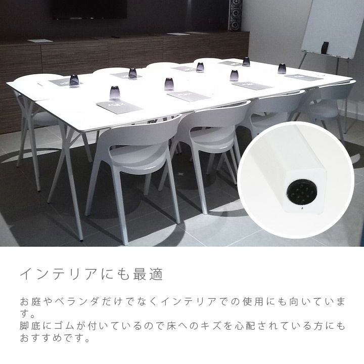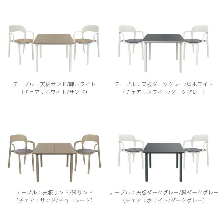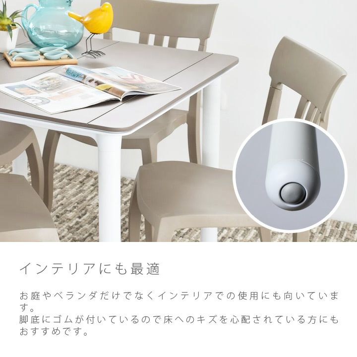 テーブルとチェアを同色で揃えた一体感のあるコーディネート。シンプル過ぎず、カジュアル過ぎないマルチに活躍できる組み合わせです。
