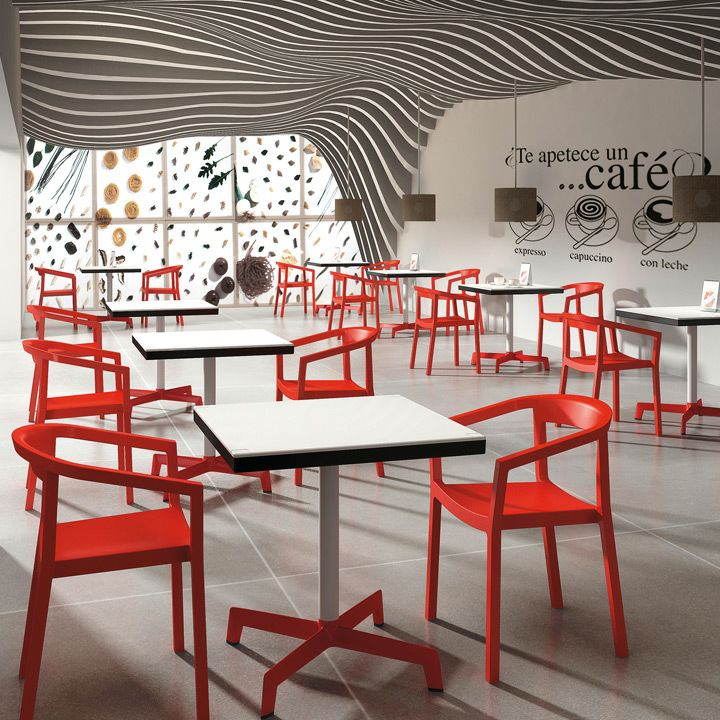 テーブルとチェアのデザインに統一感のあるコーディネート。極力周りの装飾を抑えればスタイリッシュな空間演出に。