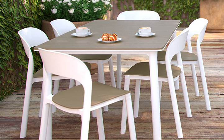 耐候性樹脂を使用したガーデンチェアなので屋外への常設も可能。