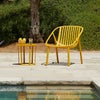 耐候性樹脂を使用したガーデンチェアなので屋外への常設も可能。