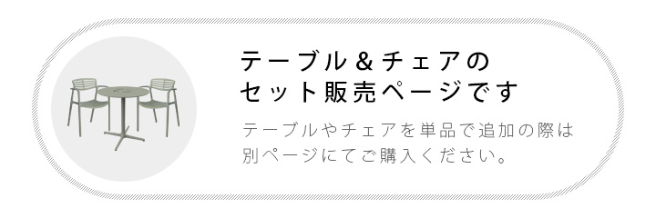 テーブル、チェアを単品で追加購入されたい場合は、別ページにてご購入をお願いいたします。
