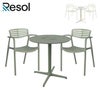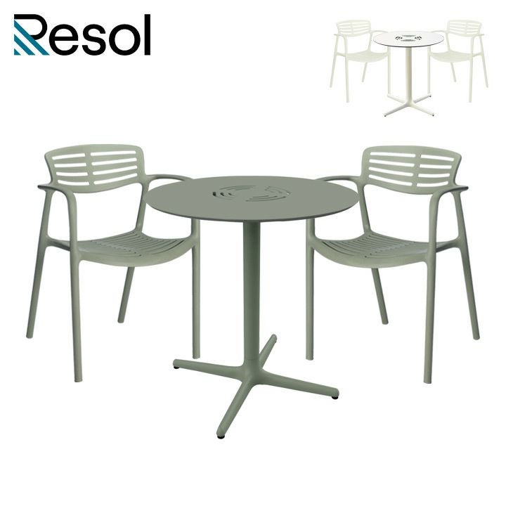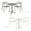 素材:テーブル/[天板]HPL(高圧ラミネート)、[支柱・脚]アルミ、チェア/全天候性ポリプロピレン、グラスファイバー