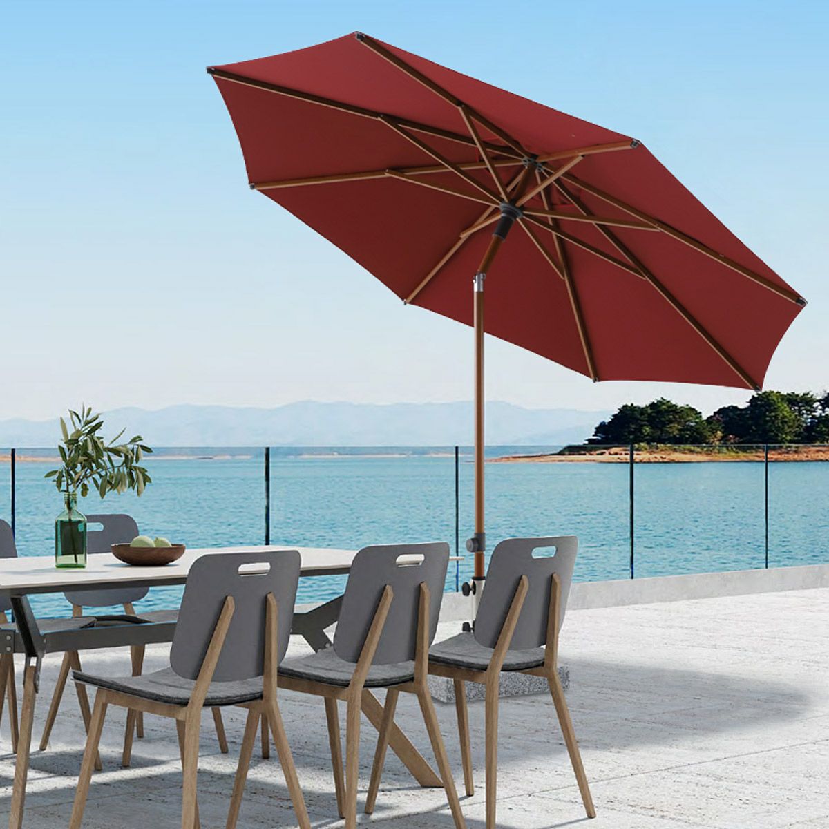 傘の向き、高さ調節など多機能で使い勝手のいいパラソルはこちら(ジューシーファニチャーは当店の姉妹ブランドです)