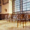 周辺の雰囲気に馴染む透明度の高いチェアは日差しを浴びれば眩く輝き、またランタンなどの灯やナイトライトなどの光を受ければムード感あふれる色を纏います。