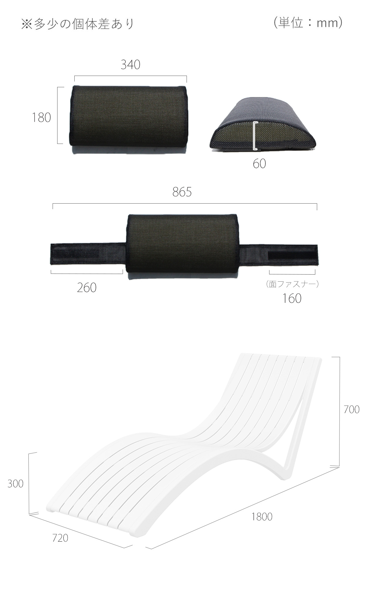 サイズ(個体差あり):クッション/W約340mm×H約180mm×D約60mm、ベルト/W約260mm、面ファスナー/W約160mm