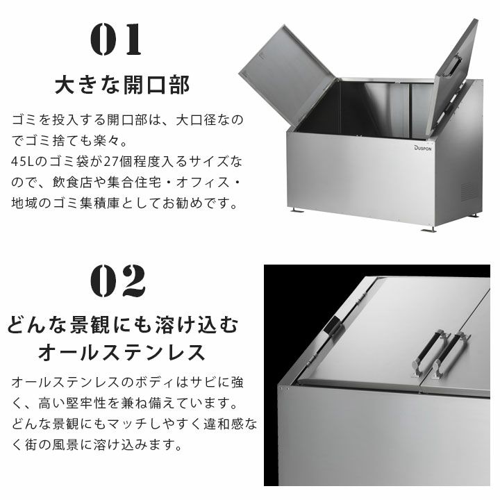 他の画像を見る ごみ箱 屋外 外用 大型 置き型 置き配 ダストボックス 宅配ボックス おしゃれ 一軒家 一戸建 店舗用 おもちゃ箱 雨対策 カラス対策 ダストボックス ゴミ収納庫 家庭用ゴミ収納庫 「ゴミステーション ホームスライド02 プレミアムモデル オールステンレス 150L」 (SG) 当店通常価格 ¥ 323,400 販売価格 ¥ 226,380 税込 詳細を見る お気に入りに登録する (0)