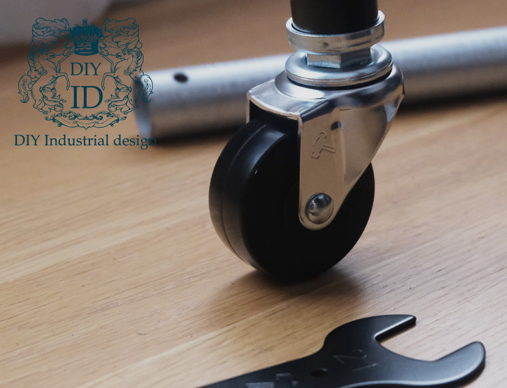 取付けはパイプにキャスターをはめてスパナで締めるだけ。