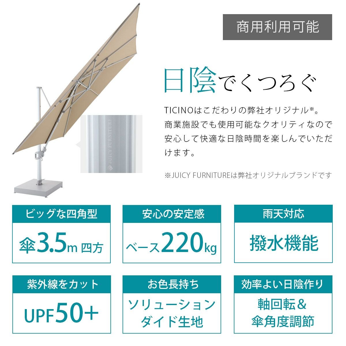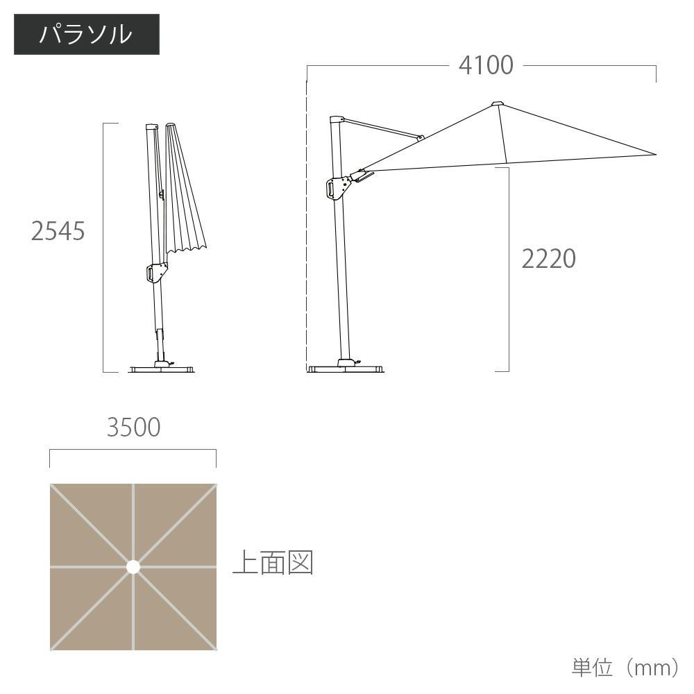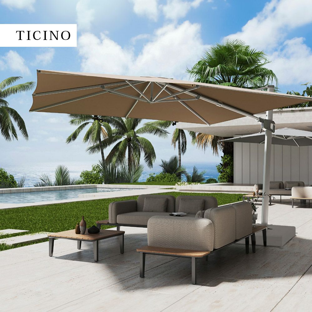 他の画像を見る 大型パラソル パラソル大型 日よけ 3.5m 正方形 紫外線 アルマイト処理 レバー&ハンドルタイプ アルミ パラソル 土台セット 高機能 ロータス効果 UPF50+ 紫外線カット 暑さ対策 「 TICINO (ティチーノ) 大型パラソル 四角形 3.5x3.5m & ベース 220kg セット (カバー付き) 」【送料要見積り】 販売価格 ¥ 245,300 税込 在庫切れ 詳細を見る お気に入りに登録する (0)