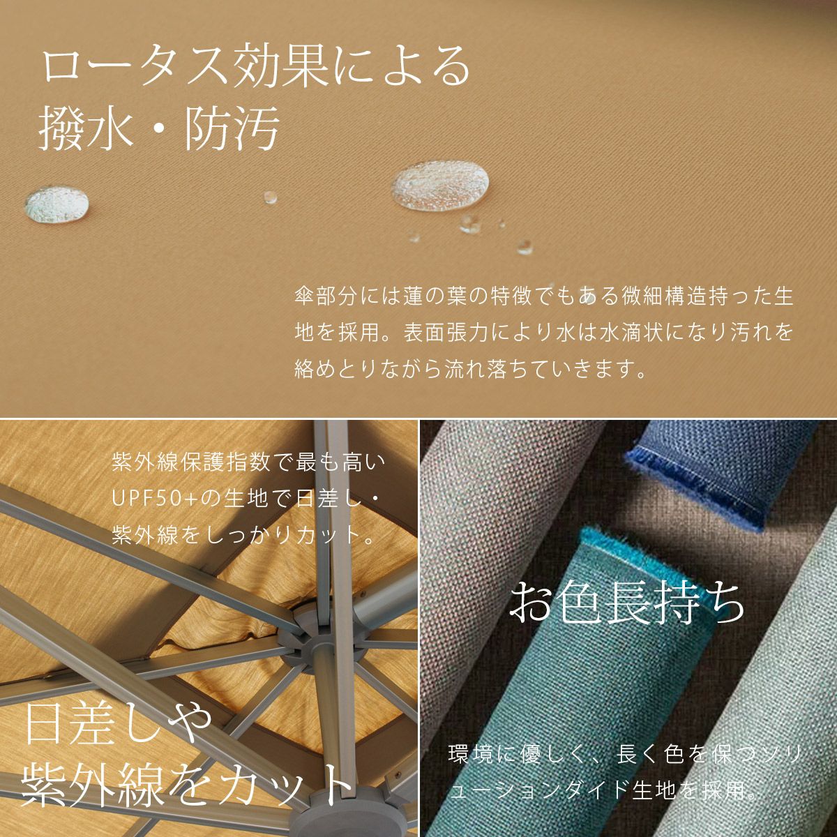 他の画像を見る 大型パラソル 日よけ 3m 四角形 紫外線 アルマイト処理 ダブルプーリータイプ アルミ パラソル 土台セット 高機能 ロータス効果 UPF50+ 紫外線カット バロス 暑さ対策 「 BAROS 大型パラソル 四角形 3.0×3.0m & マーブルベース 55kg セット 」 販売価格 ¥ 57,200 税込 在庫切れ 詳細を見る お気に入りに登録する (0)