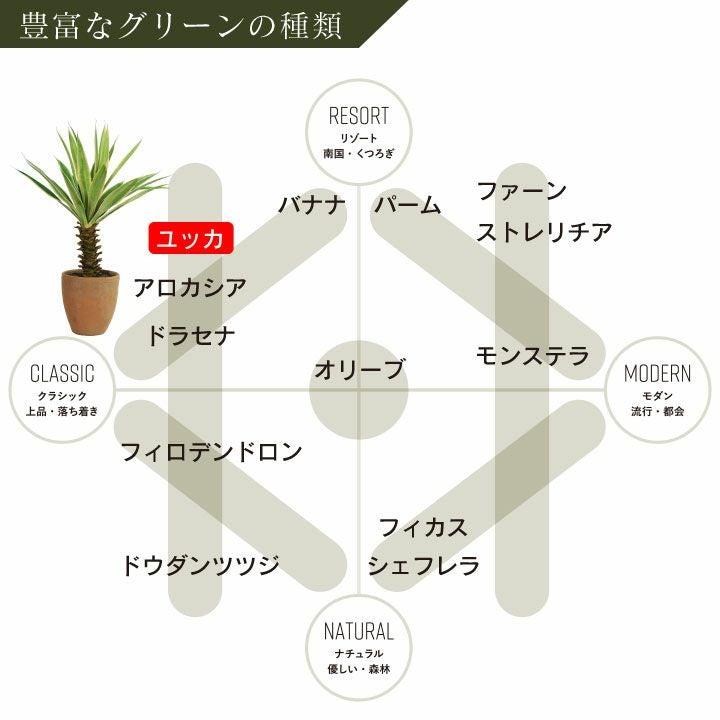 他の画像を見る 室内 オフィス ショールーム ディスプレイ キジカクシ クサスギカズラ イトラン ハイクオリティ 高級 高品質 ハンドメイド クラシック 南国 リゾート 草花 「ユッカ 76cm シルカ(Silk-ka)」 販売価格 ¥ 19,800 税込 詳細を見る お気に入りに登録する (0)