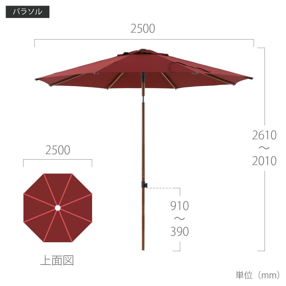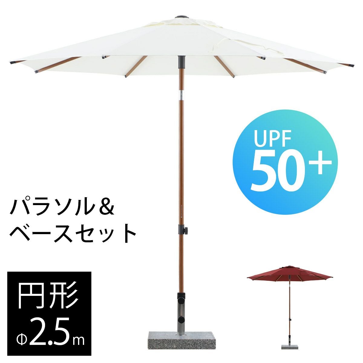 他の画像を見る 大型パラソル 日よけ 2.5m 円形 紫外線 アルマイト処理 プッシュアップタイプ アルミ パラソル 土台なし 高機能 ロータス効果 UPF50+ 紫外線カット チルト 高さ調節 バレス 暑さ対策 「 BARES 大型パラソル 円形2.5m ※ベースは別売 」 販売価格 ¥ 25,300 税込 詳細を見る お気に入りに登録する (0)