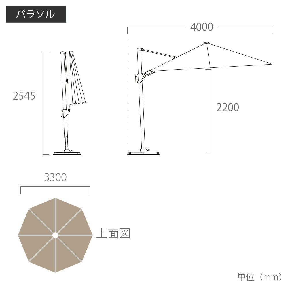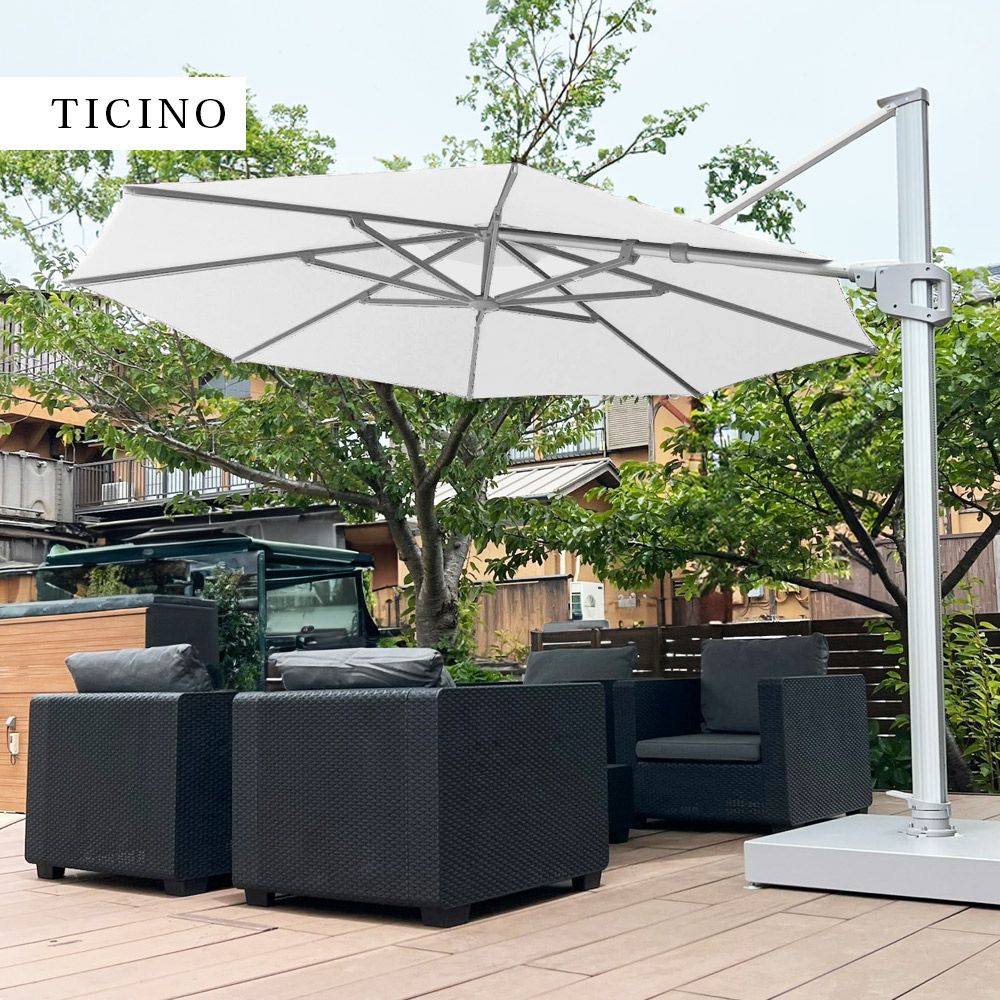 他の画像を見る 大型パラソル パラソル大型 日よけ 3.3m 円形 紫外線 アルマイト処理 レバー&ハンドルタイプ アルミ パラソル 土台セット 高機能 ロータス効果 UPF50+ 紫外線カット 暑さ対策 「 TICINO (ティチーノ) 大型パラソル 円形 直径3.3m & ベース 220kg セット (カバー付き) 」【送料要見積り】 販売価格 ¥ 228,800 税込 詳細を見る お気に入りに登録する (0)