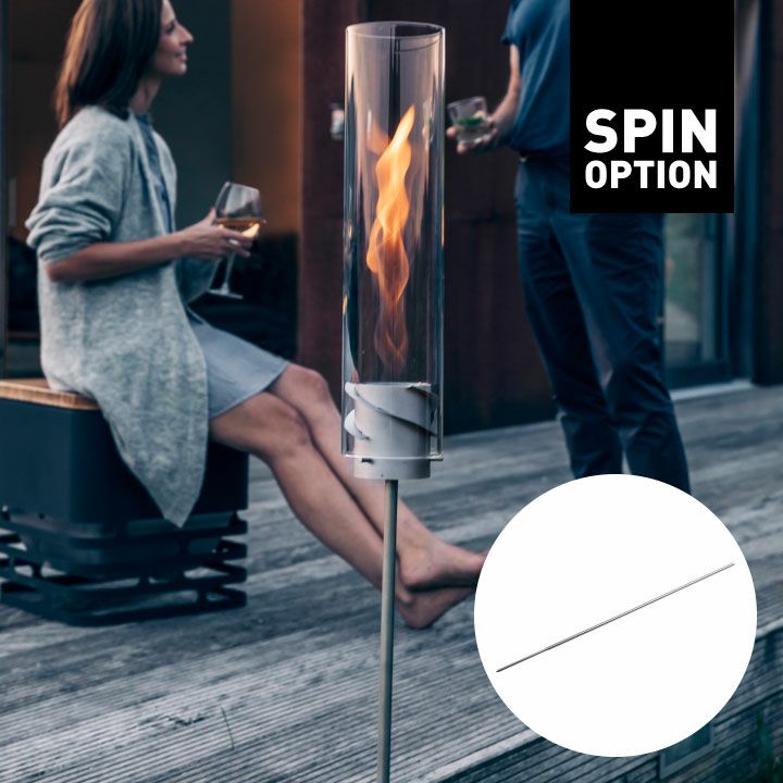屋外の地面に差し込んで固定できるこちらの専用ポールを使って、SPIN本体(別売)をガーデントーチとして利用することができます。