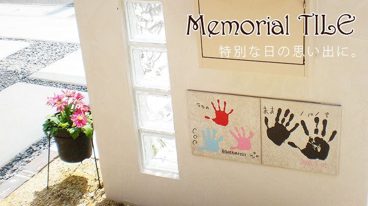 ちょっとした記念を残してほしい!毎日見ていたいから丈夫なカーポート対応用のタイルにしました。壁に貼っても良し、足元に敷いても良し。