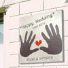 約30センチ角のタイル内に手形はもちろん、お好きなデザインでエッチングいたします。