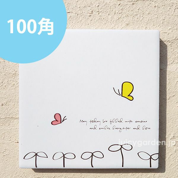 ひらひらと飛ぶピンクと黄色の蝶々が印象的なタイルです。