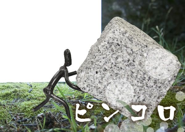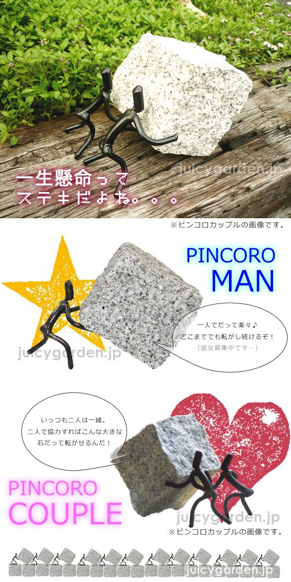 何気ないピンコロに物語が生まれました。 置物としてもユニーク。エクステリア外構の壁の一部にに組み込むのも面白い。 素朴でユーモア溢れる姿に皆が釘付け!外壁のポイントにいかがでしょうか? 一人で一生懸命ピンコロ石を転がす【ピンコロマン】以外にも、二人で協力し合って愛を育む【ピンコロカップル】もいるんですよ! お好きな場所へレイアウトしてみてくださいね。 ※キャラクターとピンコロ石は接着剤でつながっています。 ※一点一点職人さんの手作りですので、キャラクターの造形や大きさは若干異なってきます。 ※本ページ商品はピンコロマンです。