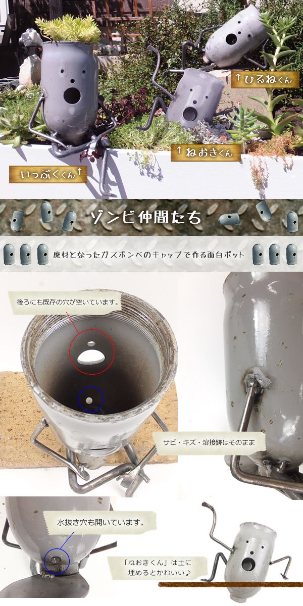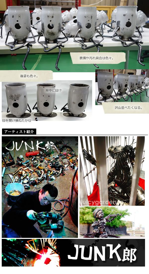 当店で不動の人気を誇るBOMPOS!の作者、ジャンクアーティスト JUNK郎氏が作るユニークなプランター。