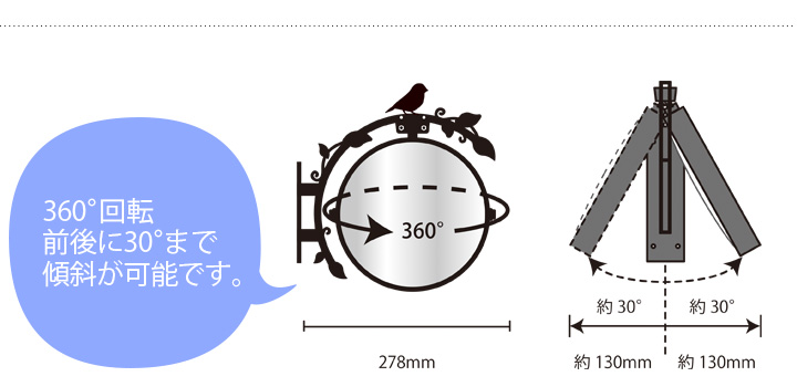 備考:可動範囲/ミラー部分 360°回転、前後傾斜30°