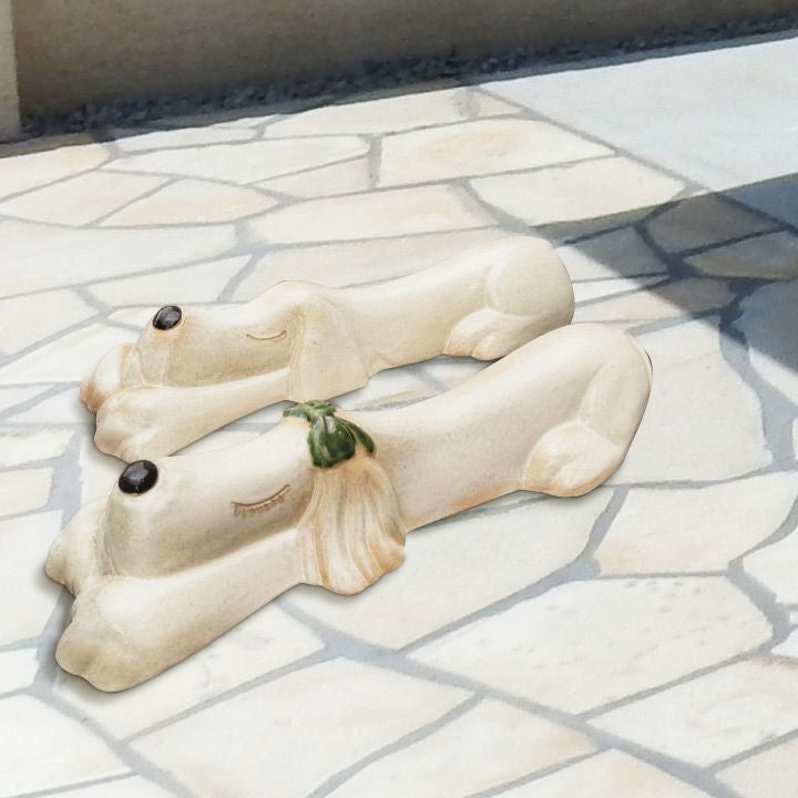 用途は車止めですが、車が出かけているほうが良いと思えるほどかわいいルックスは、まさに駐車場のマスコット的存在です。