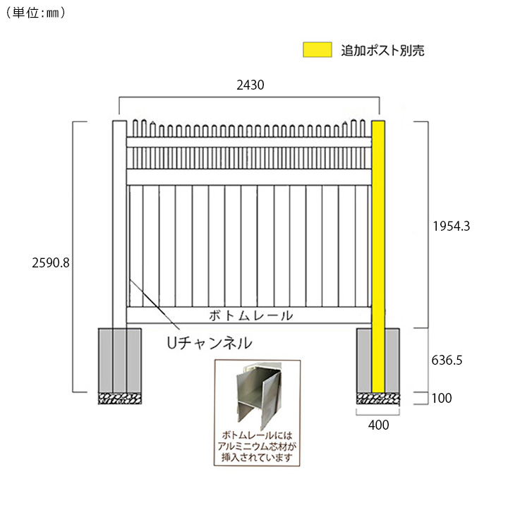 内 容:ボトムレール(アルミニウム芯材入り)/1本、Uチャンネル/2枚、ミドルレール/1本、パネル/15枚、トップレール/1本、ピケット(中)/2本、ピケット(大)/4本、ピケット(小)/23本、ピケットキャップ(大・中・小 合わせて)/29個