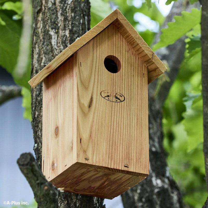シジュウカラの習性に合わせて設計された三角屋根のかわいらしい巣箱です。