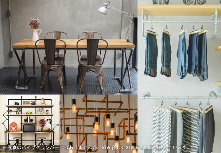 同シリーズのパイプに取り付けることでスムーズな移動が可能な家具や什器を組み上げることが可能。