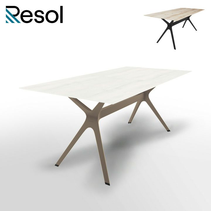 温かみを感じる木目が美しいオークの木目プリント天板とスタイリッシュな脚との組み合わせがおしゃれな「Resol Vela L テーブル 180×90」